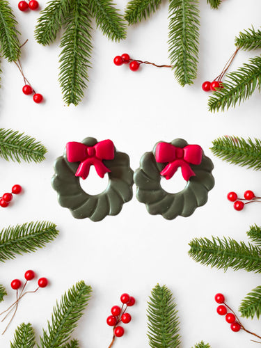Red Ribbon Wreath Studs