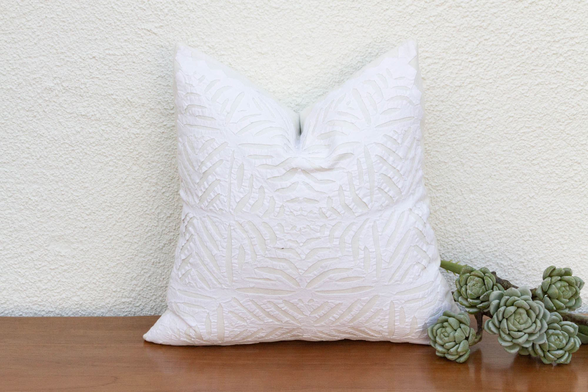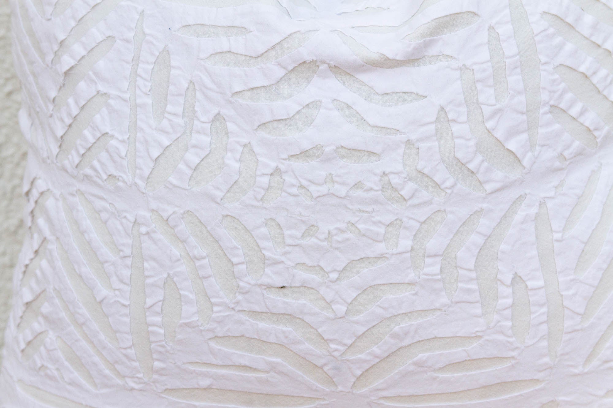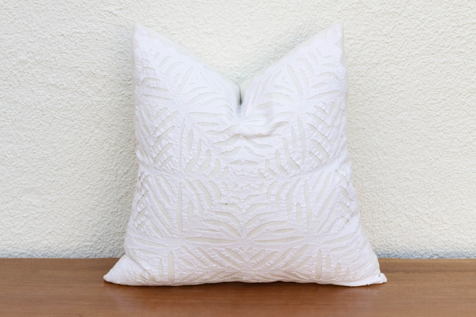 This decorative pillow cover features beautiful array of patterns, with hand crafted appliqué cut work, giving it a timeless appeal. Initially, this ancient Indian technique called appliqué was used to repair and adorn worn-out clothes, making them functional and aesthetically pleasing. This large artisanal pillow cover is made from breathable cotton. This pillow has a cotton backing with a hidden zipper. Insert sold separately.