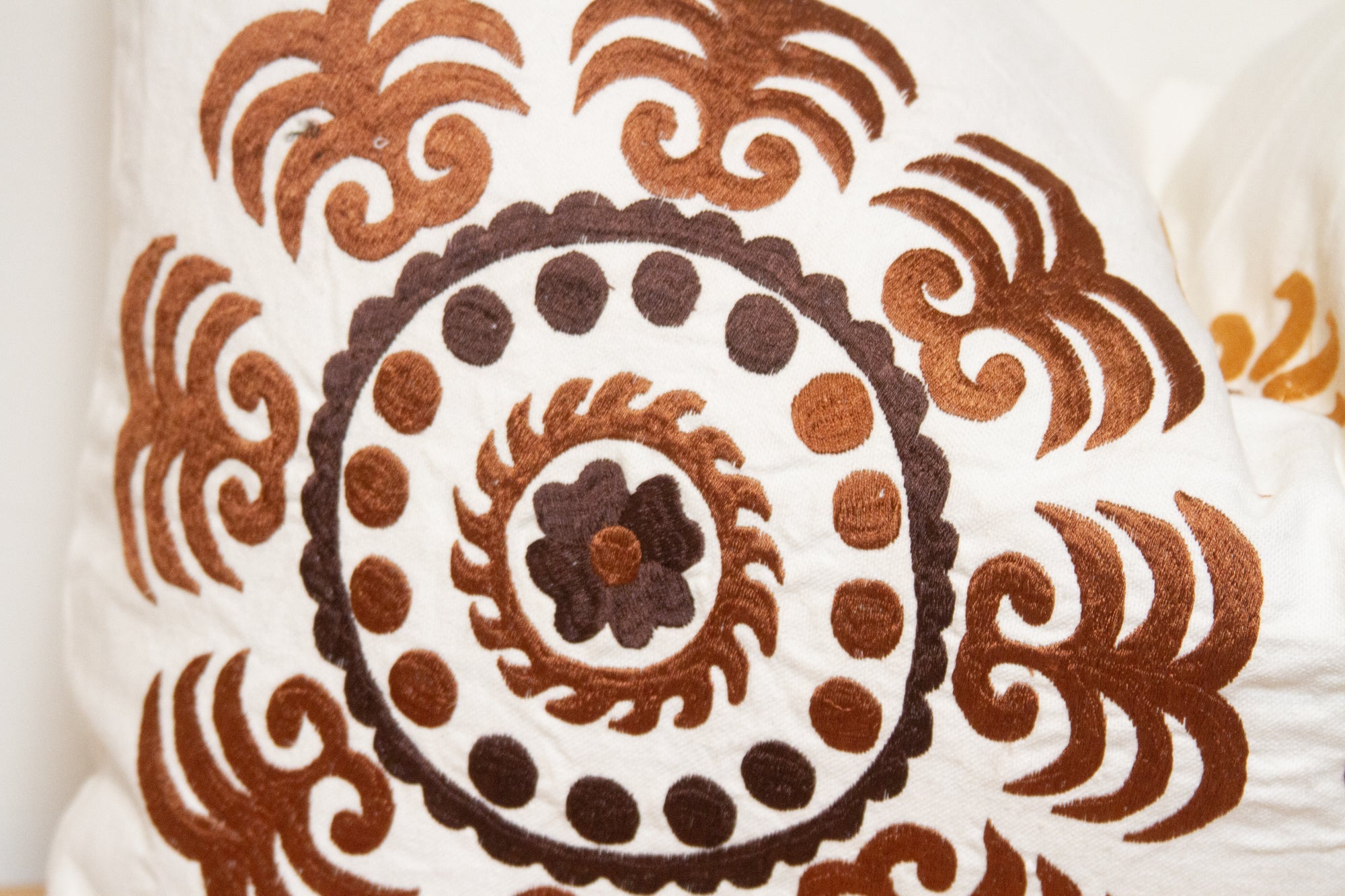 This kaleidosopic suzani pillow would be an beautiful addition to any space. Suzani means "needle work" in Persian, this silk blend pillow cover features lovely intricate silk embroidery work on the front and a hidden zipper enclosure on the back. *Pillow insert sold separately*